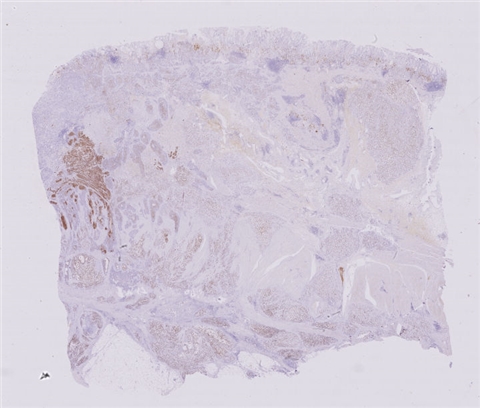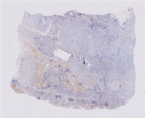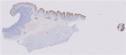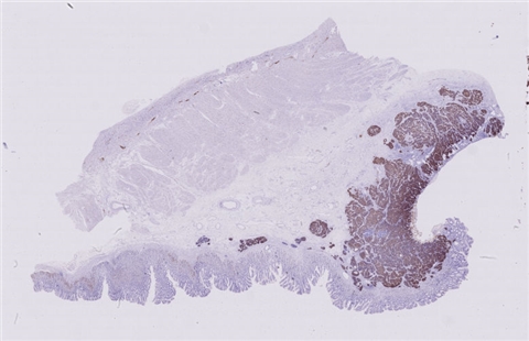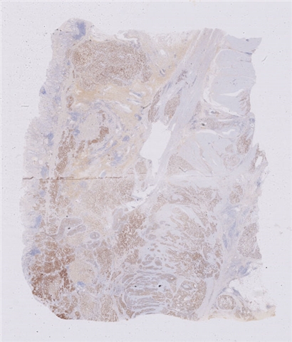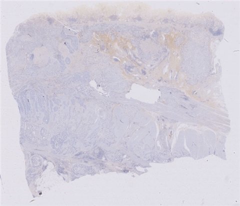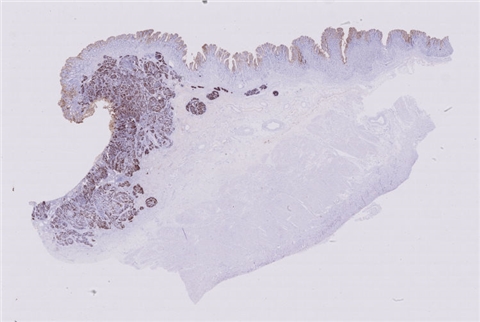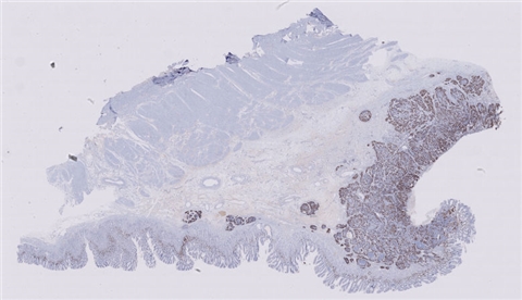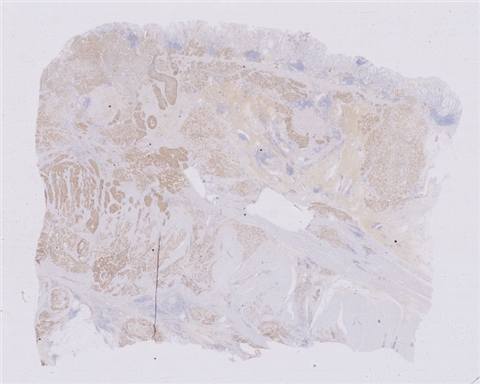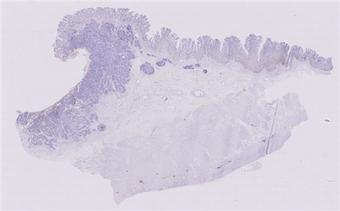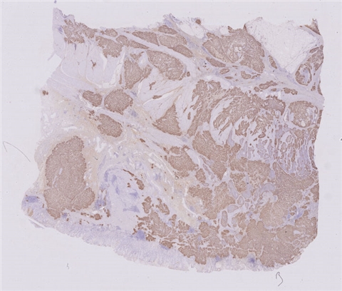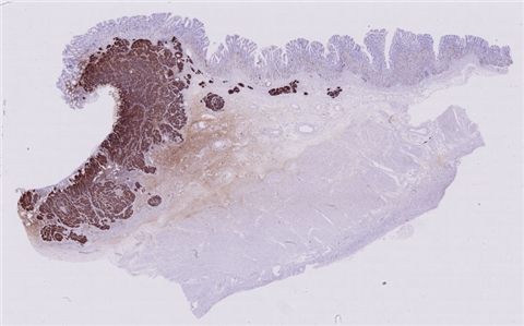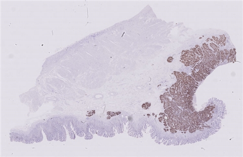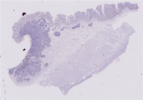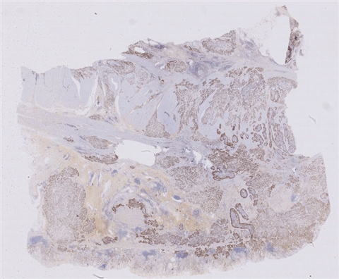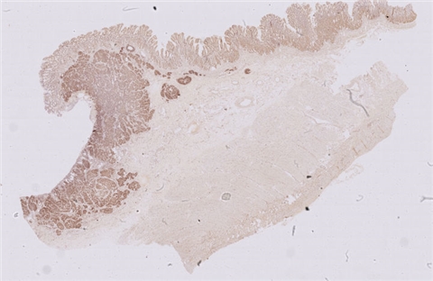 免疫组化: 20162417:CgA(+)、Syn(+/-)、CK8/18(+)、CKP(+)、CDX-2(+)、CK19(+)、Villin(+)、CK20(-)、CK7(-)、AFP(-)CD20(-)、CD3(-)、CD34(血管内见肿瘤细胞)、GATA-3(-)、P40(-)、PSA(-)、TTF-1(-)