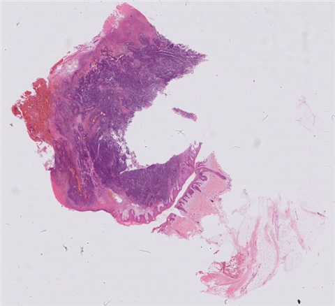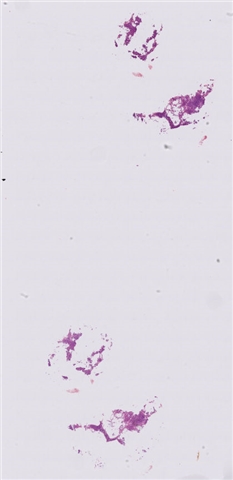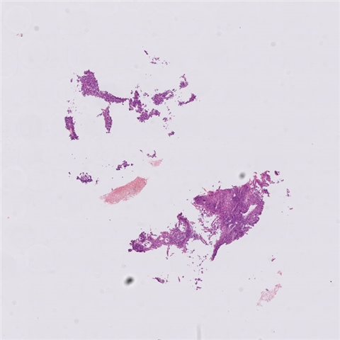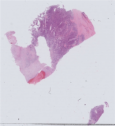 3、下切缘:灰褐色黏膜组织一块,大小1.2*1*0.4cm。